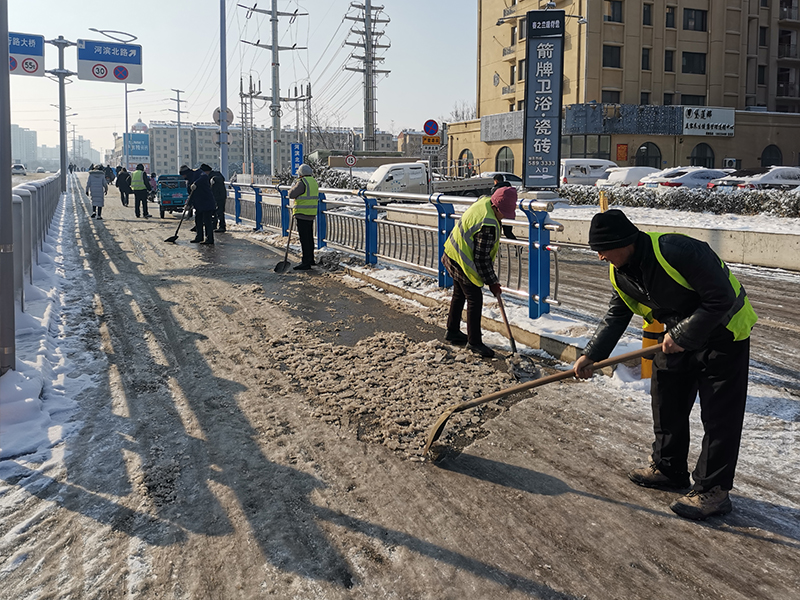 2月4日至5日期間,全市出現(xiàn)連續(xù)降雪、寒潮天氣,給群眾的日常出行帶來(lái)很大不便。興滕公司積極響應(yīng)市委市政府號(hào)召,第一時(shí)間組織黨員干部職工到平行路進(jìn)行掃雪除冰,以實(shí)際行動(dòng)踐行“我為群眾辦實(shí)事”。 在現(xiàn)場(chǎng),大家不畏嚴(yán)寒、齊心協(xié)力,攜帶鐵锨、雪鏟等工具迅速投入到破冰除雪活動(dòng)中,同時(shí)安排多臺(tái)鏟車上路清