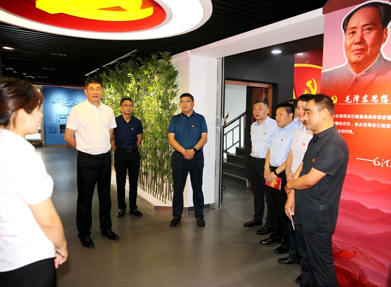 7月16日,山東天行健置業有限公司董事長陳志遠、總經理顏東升帶領黨員干部職工一行來集團黨群中心參觀,開展學習教育活動。集團董事長宗成偉、總經理侯欽軍、副總經理王慎禮、副書記張明陪同活動。陳志遠一行先后參觀了集團黨建陣地、企業文化展廳等現場,聽取了相關介紹,詳細了解了集團黨建工作開展、黨建品牌與企業