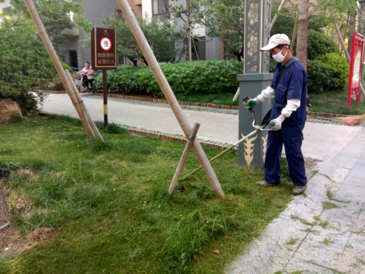 物業(yè)對損壞道路地磚進行修補對草坪進行修剪
