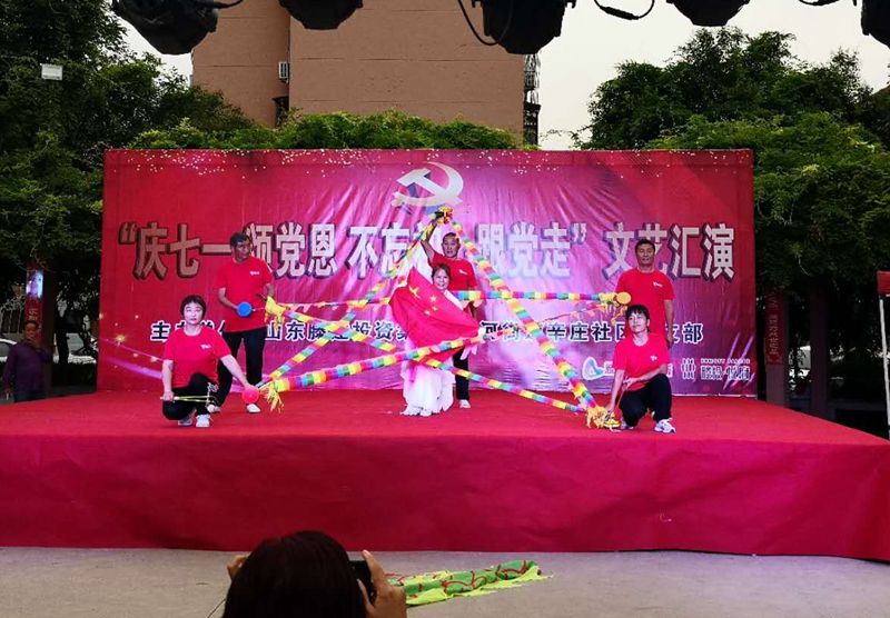 當(dāng)天,滕投集團(tuán)和辛莊社區(qū)聯(lián)合為社區(qū)居民奉獻(xiàn)了一場精彩紛呈的“慶七一 頌黨恩 不忘初心跟黨走”文藝匯演。演出活動(dòng)在聲勢浩蕩的“軍鼓”表演中拉開帷幕,省級獲獎(jiǎng)節(jié)目《空竹表演》、舞蹈《祝福祖國》、小合唱《紅梅贊》、竹笛獨(dú)奏《揚(yáng)鞭催馬運(yùn)糧忙》等節(jié)目將活動(dòng)持續(xù)推向高潮。