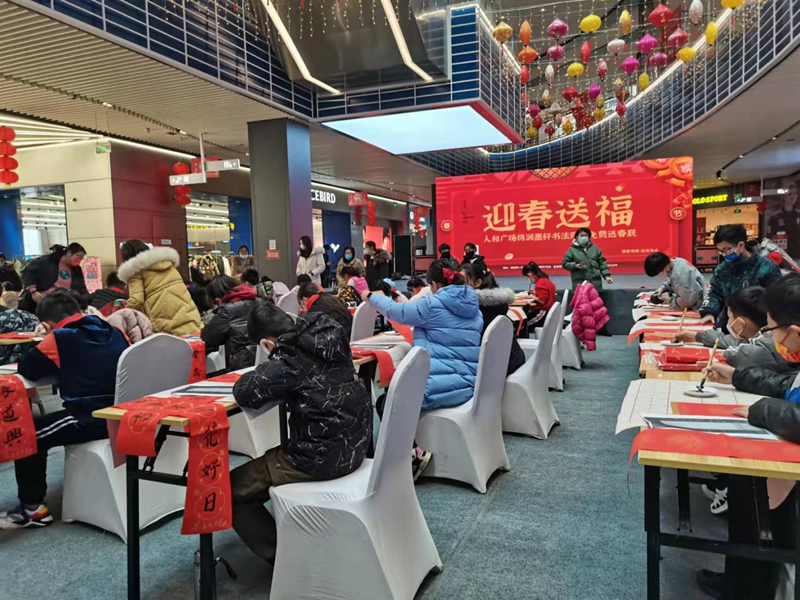 虎年將至,為迎接新年到來,滕投·人和廣場舉辦新春送春聯活動,邀請了近百名熱愛書法的小朋友現場書寫春聯,免費贈送商場顧客。