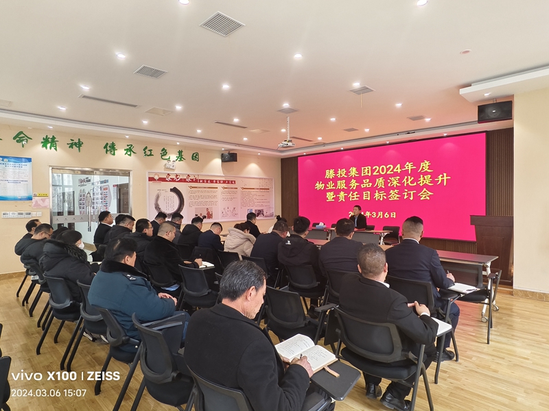 為認真貫徹執行滕投集團關于啟動“物業品質深化提升主題活動”部署要求,全面提升集團下屬各物業公司的服務品質。3月6日,滕投集團萬德物業公司召開了“2024年度物業服務品質深化提升年啟動會暨責任目標簽訂會議”。會議旨在明確新一年的服務品質提升目標,落實責任分工,確保各項措施得到有效執行,為業主提供更加優質、高效的物業服務。