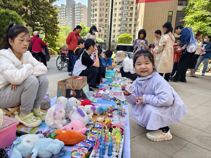 活動當天,小區廣場被布置得熱鬧非凡,彩色的氣球、歡快的音樂和孩子們的笑臉交織成一幅溫馨的畫面。孩子們在家長的陪伴下,紛紛化身“小老板”,將自己的閑置玩具、圖書、手工藝品等擺放在攤位上,并貼上了價格標簽。